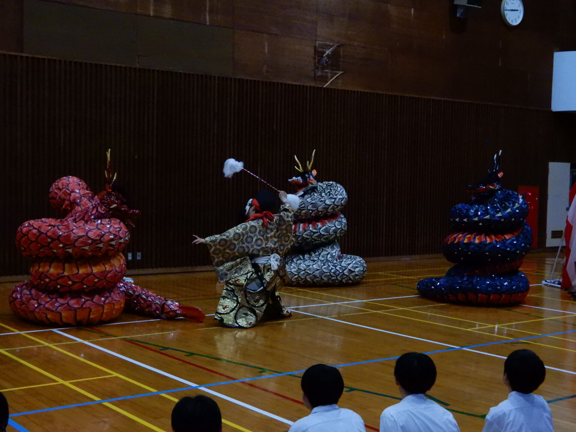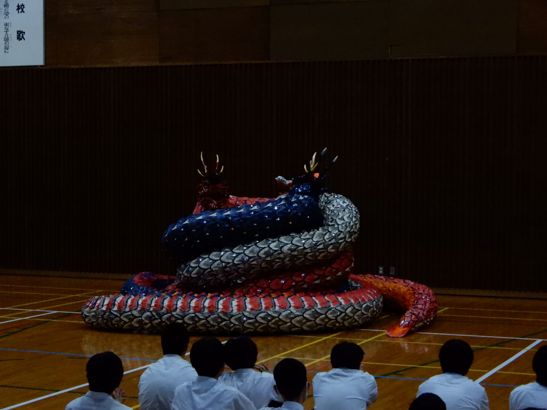 高島に伝わる郷土芸能であり、本校生徒会長の中川浬君も「赤大蛇」として登場しました。