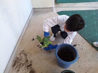 冬に備え、挿し木して1年たった株の「植え替え作業」を行いました。